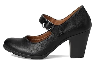 - round toe dress pump, one piece rubber unit for extra comfort, Mary Jane strap, adjustable buckle, flexible outsole