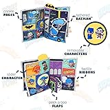 Cloth Baby Book: Help baby to learn & begin story time with a soft fabric comic book featuring Batman and Robin, Batgirl, The Flash, Joker, and Harley Quinn. Explore colors, sounds & textures Soft Teething Toy: Fun interactive materials keep baby engaged. This soft baby book features crinkly sound, peek a boo flaps, slider, tactile ribbons, and 2 removable Batman and Joker characters. Babys First Toy: A baby essential, this carseat & stroller toy is ideal for baby showers, 1st birthdays, & is popular for boys & girls ages 0 months to toddler. Crinkle Book: Soft books, or teether books, are classic retro Batman toys that have amused babies for decades. This interactive infant book delights babies with textures, sounds, & bright colors to discover Books For Infants: My First DC Comic Soft Book is instantly recognizable bringing sweet memories from your own childhood as it helps your child to learn, play, and grow.