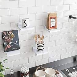 Fixwal Floating Shelves for Wall, Rustic Wood Small Wall Mounted Shelves for Bedroom, Living Room, Kitchen, Bathroom Decor, Set of 4, 5 x 5 Inches (White)