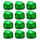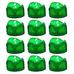 Windshell Green Flickering Flame Tealight Candles with 6H Timer (No Remote), Melting Design, Battery Operated LED Flameless Tea Lights, Pack of 12