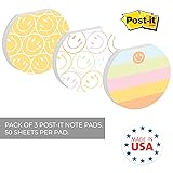 - These trendy sticky notes are perfect for brightening your day! Convenient 3.5"" round, flat top sticky note set includes 3 different designs with 50 sheets per pad. Upbeat happy face sticky note pad assortment includes a pastel rainbow color palette that is perfect for office, home or classroom. Includes ample room to write reminders, notes, messages or even a doodle! Made in the USA. Includes: Pack of 3 sticky note pads with 50 sheets eachFeatures: Convenient 3.5"" sizePastel color palette with retro smiley face illustrationsGreat gift for teacher, boss, coworker, employee, friends and familyEasily stick notes or reminders to smooth surfacesProudly made in the USA
