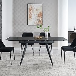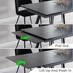 ☘️【Extendable tabletop】: Extended size range 47-71 inch(Only Table), easy to push and pull.4-6 people will feel comfortable using it, with plenty of space. When you have friends over, it can also fit up to 8 people. You can push the extension back when you don't need to use it, so it's a great space saver. ☘️【Tabletop Material】A new material, sintered stone, with a cool marble-like appearance. But more resistant than marble to corrosion, high temperatures, and hard to fade. The simple yet stylish look of the sintered stone dining chairs has made them very popular. ☘️【High Temperature resistance】: When it encountered fire or high-temperature things, it won’t have physical changes (shrinkage, rupture, deformation). It won’t be a problem if you put any hot things on it. ☘️【Easy to Take Care of】: No special maintenance requirements. Impermeable to stains due to its unique material. You can clean it in a simple and fast way within a minute. ☘️【Modern Style】:This multifunctional table has a modern minimalist style that is suitable for any setting, such as living rooms, dining rooms, homes, and offices. PS: To avoid logistics delays, please provide effective contact information or communicate based on the courier station number provided in the mail.