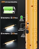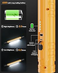 UPGRADE 3000LM COB ULTRA BRIGHT: Aboutool Upgrade High Brightness Work Light produces up to 3000lm of high brightness (6500K), which is enough to illuminate your work area. With 2 different light levels for the mechanic light, you can adjust the light according to your needs. Considering the safety of work maintenance and emergency situations, our handy led work light also adds SOS mode to make you more diversified in use. 6000MAH BIDIRECTIONAL CHARGING DESIGN: This wireless led work light has a built-in 6000mAh capacity battery, which can be recharged through the Type-C port, saving the cost of extra/replacement batteries. A full charge will last up to 3.5 hours in high mode and 6.5 hours in low mode.4 Levels of power indicator allows you to check the remaining power level, ensuring that the rechargeable floodlight is charged in time to avoid interruption of work. The underhood work light also adds a reverse charging design so you can use it as a temporary mobile power source to charge your electronic devices. ULTRA STRONG MAGNETIC BASE: The under hood work light has strong magnets on both ends, you can attach it to any magnetic metal surface, perfect for working under the hood. To ensure the longevity of the magnetic suction feature as well as the magnetism, we completely enclosed the magnetic base in silicone. The base rotates 180 degrees and the center section also rotates 360 degrees to point the light where it is needed and hold it firmly in place. HIDDEN HOOK DESIGN: Besides the magnetic function, our led work light with stand has hidden hooks on both ends, you can use the hooks to hang where there is no metal magnet in order to free up your hands to finish your work. MILITARY GRADE DESIGN: Do not use inferior and cheap work light alternatives. Aboutool slim bar handheld work light is designed with TPE patch for a more comfortable grip (19.7 inches and 1.5 lbs). Hard rubber on both ends provides ample protection, while the molded lens cover offers enhanced durability and a damage-free finish. It passed the 6-foot drop test without any problems. It also has an IP54 dust and water resistant design, making it perfect for everyday and jod site use. WIDELY USED: From home improvement, car maintenance, camping trips to emergencies, our rechargeable hood light provides you with reliable lighting anytime, anywhere.IP54 protection rating, can be better used in a wider range of scenarios. The eye-catching orange color housing makes it easy to identify in cluttered environments. TIPS: The magnetic lights rechargeable CANNOT stick to aluminum alloy, carbon fiber, or surfaces with extremely low iron content. If the underside of the hood is aluminum, then the magnets don't work. Please stick to the surface with high iron content to hold the work light. Charging tip: Please use the included charging cable to maximize charging efficiency. Other cables may not be compatible with our light.