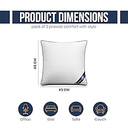 Throw Pillow Inserts Pack – Set of 2 decorative and aesthetic throw pillows that are breathable and highly supportive, giving you a soothing experience. Measurements - Each pillow insert has the measurement of 18 x 18 Inches (45 x 45 cm). Unmatched Comfort – Having a plush nature makes the pillow comfy. Enjoy an extra level of relaxation, and luxury whilst resting or sleeping with our bouncy throw pillows. Multifaceted Use – Our pillows are designed for universal use, making them ideal for a car, office, sofa, bed, outdoors, at a window bay or any other living space. Piping Across Edges – The pillows consist of exquisite navy-blue piping throughout the edges for a clean and fancy finish and enhanced durability.