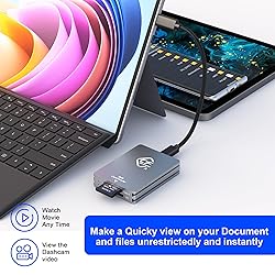Updated CF express type A/SD Memory Card Reader: This CFexpress type A card reader compatible with CFexpress Type A and SD memory card such as 32GB, 64GB, 120GB, 128GB, Max 2TB. Please note: Simultaneous reading of SD card and CFexpress card is not supported. If both an SD card and a CFexpress card are inserted, the CFexpress Type A card will be read first. USB-C/USB-A to CFexpress Card Reader: Our professional CFexpress Type A Card Reader comes with one USB A to C cable and one USB C to C cable, designed to allow your device to compatible with MacBook Pro, Mac Air, computer, PC, laptop and other devices-not only USB type C device but also USB A device simultaneously. 10Gpbs Super Speed Data Transfer: USB3.2 Gen2 Card Reader supports maximum transfer speed up to 10Gbps for your CFexpress A card. This cfexpress memory card read and write high-resolution photos, full HD videos from your CFexpress card quickly. Backward compatible USB 3.1 Gen 1 and USB 3.0 Plug & Play Easy to Use: This CFexpress SD Card Reader with plug & play design, no need extra driver and power. Portable CFexpress card reader compatible with most systems, also compatible with most devices. What Will You Get: 1 x CFexpress Type A Card reader, 1 x USB-A To C Cable,1 x USB-C To C Cable, 1 x User Manual, One year warranty and 24 hours friendly customer service. Please feel free to contact us at any time.