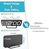 【Size and Design】About 6.7 inches (L 6.4 inches * W 3 inches) HD mirror screen display allows you to use it as a mirror to groom your looks while viewing the time. The alarm clock body has been redesigned to reduce its thickness to only 0.4 inches. Its sleek and simple design makes it both practical as an alarm clock and fashionable as a decoration. 【User-Friendly】With simple buttons and a clear setup logic, and a detailed user manual included, it's easy to get started with this alarm clock. Various details and functions are designed with user scenarios in mind. 【Alarm】Two alarm that can be set to easily meet the needs of daily use. And each alarm can be set up with different work modes, 1-7 (MON-SUN), 1-5 (MON-FRI), 6-7 (SAT-SUN). And there are 5 levels of alarm volume for selection. Snooze button can get you an extra nine minutes of sleep. 【Brightness】The alarm clock has a total of 4 levels of brightness to choose from. Allows you to choose the appropriate brightness for day, night or when you need to look in the mirror. 【USB Ports】Two USB charging ports allow you to connect your own devices for charging. 【Perfect Gift for Women】This mirror alarm clock is a perfect gift for women, sister, teen girl, daughter, mom. And its elegant appearance and practical function make it a thoughtful holiday gift. There are also multiple colors to choose from, meeting everyone's preferences.