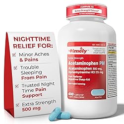 - THE SMART CHOICE FOR NIGHTTIME RELIEF Stop tossing and turning. TIME-CAP LABS presents the ultimate solution for sleepless nights caused by minor aches and pains. Our extra strength acetaminophen PM caplets are scientifically formulated to bridge the gap between powerful pain relief and a restful night's sleep. CORE SPECIFICATIONS: 500 mg Acetaminophen: A pain reliever to tackle headaches, muscle aches, and minor arthritis pain when used as directed. 25 mg Diphenhydramine HCl: A proven nighttime sleep aid that helps you fall asleep fast and stay asleep. Consistent Quality and Uniformity: Every batch of our pain pills is made in a quality controlled facility and undergoes quality checks to help ensure consistent potency and quality you can rely on for peace of mind. 400 Caplets: Massive bulk savings for families. Contains the same active ingredients as Tylenol PM Extra Strength. WHY SWITCH TO TIME-CAP LABS? National Brand Equivalency, we use the exact same active ingredients as the leading national brands. You get the same efficacy, the same safety profile, and the same extra strength relief without the markup. Factory-Direct Quality Control Unlike brands that outsource, TIME-CAP LABS manufactures our acetaminophen pm products right here in the USA. We control the process from raw ingredient sourcing to the final seal, ensuring purity in every caplet. Q: Is this safe for nightly use? A: When used as directed, our formula is a non-habit forming sleep aid safe for adults and children 12 years and older. It is intended for occasional sleeplessness associated with minor aches and pains. Experience the difference of American-made quality. Rest easier with Time-Cap Labs.