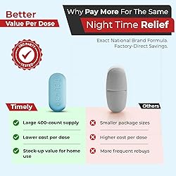 400-COUNT VALUE SIZE: Stock up on effective pain relief caplets for the whole household. This bulk supply of acetaminophen 500mg & diphenhydramine HCL 25mg caplets offer a smart, low-cost way to stay prepared for headache pills needs without frequent restocking. DUAL-ACTION PM FORMULA: Each acetaminophen extra strength caplet provides effective nighttime pain relief for adults and children 12 years and older. Helps ease occasional headaches and minor aches and pains, allowing you to rest more comfortably when used as directed. TRUSTED QUALITY & SAFETY: Produced in a quality-controlled facility with strict manufacturing standards. TIME-CAP LABS ensures every batch meets consistent strength and uniformity for your peace of mind. SMOOTH-COATED CAPLETS: Designed with a streamlined shape and smooth coating for easy swallowing. Simple to dose before bed to drift off comfortably and wake up refreshed. DEEP SLEEP & PAIN RELIEF: Don't let aches keep you awake. TIME-CAP LABS pain relief pm caplets provide temporary relief from occasional headaches and other minor aches and pains. A dependable option for adults and children 12 years and over when used as directed.
