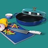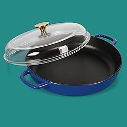 WHAT'S IN THE BOX: one 3.75-quart enameled cast iron everyday pan with glass lid HAPPINESS IS HOMEMADE: sur la table kitchen essentials is all about making and sharing good good at home together. from preparing the freshest ingredients to the beautiful mess of cooking a family recipe, we encourage you to roll up your sleeves, mix up a happy kitchen, and set the table for free-flowing conversations over an easy, generous, and crowd-pleasing meal. 7-IN-ONE MULTIPURPOSE PAN: versatile braiser that goes over and beyond. ideal for deep frying and searing like a skillet, baking like a casserole dish, pan-frying and sautéing like a sauté pan, and slow-cooking and simmering like a Dutch oven CAST IRON COOKWARE: tough cast iron everyday pan distributes and retains heat evenly EASY TO CLEAN AND MAINTAIN: enamel finish resists rust and stains, requires no seasoning, and adds a vibrant punch of color to any kitchen, stove, or table