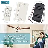 Ceiling Fan Remote Control Kit --- This remote control & wall control 2-in-1 smart fan and light switch combo designed with separate buttons, including multiple functions, can control fan and light on/off separately; Control the 3 fan speed, including 1/2/3 / level; Remote control with dimmer and 2-8H timing function. WIFI Voice Control & APP Support --- Compatible for Amazon Alexa, Google Assistant, can voice control ceiling fan light; APP Support: Ceiling fan Remote control and receiver for iOS and Android mobile apps. Download and Open “Smart Life” Mobile App. NOTE: when you choose the router connected to the mobile app, please select the 2.4G network. Don't choose 5G or 5.8G network. Otherwise, the device may not be able to connect to the APP. Wide Application --- Compatible with most standard ceiling fans, our smart remote control offers a range of advanced features for your convenience. This universal ceiling fan remote control kit works well with most of ceiling fan light, like Hunter, Harbor Breeze, Hampton Bay, Westinghouse, Honeywell and Others well-known brands. NOTE --- If you have PULL CHAINS SWITCH, before using the wireless remote control, use the PULL CHAINS SWITCH to turn the wind speed to maximum and turn the fan light on. Only in this way can the PULL CHAINS SWITCH and wireless remote control be used together. Easy Install --- Installation of the ceiling fan remote kit is very easy and fast. Please set the frequency combination of transmitter & receiver at the same pattern. It has a LEARN key that allows it to match more type of receivers. And please follow the Instruction of Installation and Operation to install it.