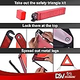 DSV Standard Roadside Safety Triangles help you to stay visible when pulled over or broken down during the day/night time, in fog, rain and snowfall. Each auto safety triangle has rubber foot pads on metal legs. These foot pads hold the Car Reflective Triangle firmly in strong winds or on uneven surfaces. Day/Night Emergency Warning Indicator: Roadside emergency triangle reflectors are designed with red reflective acrylic for night visibility and vivid orange plastic for daytime use. Please note: only one side of each warning triangle is reflective. Compact Size: 16.9 X 16.9in, height 15.8in. Foldable design, and have compact carrying cases, do not take up space, convenient to hide in the vehicle and carry. DSV SATISFACTION GUARANTEE - Every DSV Safety Triangle Set includes a full 18-month warranty against defects in design, materials, and quality so that you can buy with confidence. Plus, if you're not 100% happy with your purchase for any reason, we'll refund your money, no questions asked.