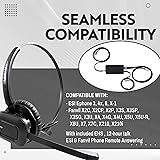 Professional Telephone Wireless Headset, Remote Hook On and Off, Incoming Call Alert, Large Earpad, Elegant Magnetic Headset Charging Stand, Visual Glass Call Indicator, and Busy Light Indicator Jack Crystal-Clear Communication Anywhere, Two Year Warranty - With the wireless headset for phones DECT technology enabling an impressive 300 feet wireless range, the digital noise-canceling microphone ensures that others hear you clearly, filtering out ambient noise from your surroundings. Package Price Deal : Desk Phone Wireless Headset plus Remote Hook Switch Device (EHS) for ESI Ephone 3 / 4x / 8 / X-1, Fanvil X1S, X1SP, X1SG, X2C, X2CP, X2P, X3S, X3SP, X3SG, X3U, X4, X4G, X4U, X5U, X5U-R, X6U, X7, X7C, X210, X210i Newest 300 feet Wireless DECT 6.0 Technology Headset - Transform your landline phone (Not PC) with this wireless headset for work, allowing you to roam up to 300 feet away from your desk. The office wireless headset DECT technology ensures a significantly broader range than Bluetooth, providing unparalleled freedom in your workplace. Max 12 Hours Talking, 50 Hours Standby Time : Maintain uninterrupted conversations with a generous 12-hour talk time, ideal for extended work sessions. The Long Lasting telephone headsets is the Essential Battery feature for Office Desk Phone Headset.