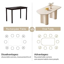 Round Edge Design: Our dining table features rounded corners, which sets it apart from a standard rectangular design. The soft, curved edges not only create a more welcoming and inviting feel, but also provide added safety for those seated around it, making it an excellent choice for families with young children or pets High Quality Materials: Our dining table is made of sturdy MDF material and is crafted using four unique techniques and eco-friendly board to ensure maximum strength and stability. The use of high-quality materials and expert craftsmanship means that this dining table will not only be a beautiful addition to any living space but also a durable and long-lasting piece of furniture that you can enjoy for years to come Unique table legs: Guyii kitchen table boasts exquisitely crafted wavy table legs that add a three-dimensional aesthetic to its design. The legs are not only visually stunning, but also provide sturdy support thanks to the table's floor-level construction and exceptional weight-bearing capacity. Whether you're hosting a large dinner party or enjoying a casual meal with family, this table is sure to impress both in style and function Equipped with 6 Chairs: The set includes six matching dining chairs that complement the table perfectly. Each chair is meticulously crafted with ergonomic considerations, providing optimal comfort during meal times or gatherings. With their padded seats and supportive backrests, these chairs offer a cozy and enjoyable dining experience for you and your guests. Gather around this exquisite table with family and friends, creating lasting memories and enjoying delightful meals together 100% Customer Guarantee: Guyii provides you with quality products and excellent customer service. If you encounter any problems with the dining table, please do not hesitate to contact us, we will provide you with fast and friendly customer service. Get yours and more for family and friends TODAY