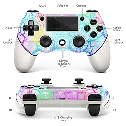 AceGamer Wireless Controller for PS4, White Crack Custom Design with RGB Light,1000mAh Battery and 3.5mm Audio Jack, V2 Gamepad Joystick Compatible with PS4/Slim/Pro and Windows PC! (White-Light Up)