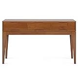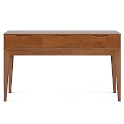 SIMPLIHOME Harper Console Table - 54 Inch Wide Solid Hardwood Sofa Table in Teak Brown, Mid-Century Modern Storage Table for Entryway or Living Room with 3 Drawers, Notched Handles, and Tapered Legs