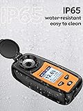 Temperature&Sugar Content: Test range 0-35%; precision ±0.2%; resolution 0.1%, perfect for Fruits,Juices,Vegetables,Drinks and Coffee... Rugged and Durable: Dust, drop, and IP65 water resistant, easy to clean LCD Backlit Screen & Quickly Get Data: Datas will be displayed on the Screen in 5s after u drop in the test sample Auto Temp Compensation: 10-40°C, test datas will be more accurate What's in the box: 1x Q6 Digital Brix Refractometer, 3x AAA Batteries, 1x User Manual. Contact us with any questions or concerns