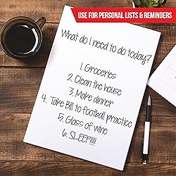 BLANK NOTE PADS: Each paper pad is the perfect office and home addition to help stay organized and up to date. WHAT’S INCLUDED: This notepad bundle will take care of all your note-taking needs! Each pack comes with 10 plain, unlined white notepads with 50 sheets of paper in each pad. This gives you 500 sheets in every order. PERFECT FOR: These blank notepads are great for writing down shopping lists, reminders, quick notes, accounting, random thoughts and ideas, plus all the endless To Do lists. They are great for the office, home, school, restaurants, and classrooms. HIGH QUALITY: Each pad is made of blank 60# bright white paper. The sheets are thick so you can write on both sides without the ink bleeding through. This is a great value for you and great for the environment. The sheets are gum glued at the top edge to heavy-duty cardboard, giving you a stable surface to lean on for an easier writing experience. Sheets tear out cleanly without leaving any residual paper tears or glue. DIMENSIONS: 8.5” x 11” Convenient size is easy to carry and take with you to jot down notes on the go. STAY ORGANIZED AT HOME AND WORK - Our scratch pads are durable but they're also compact so you can easily carry them with you. Stash them in your purse, carryall, backpack, pocketbook, or briefcase. FOR MEMOS, DOODLES, AND MORE - These writing pads are perfect for office workers, students, teachers, adults, children, waiters, and waitresses - literally anyone! Love to doodle to pass the time? Grab your pack of memo pads and scribble to your heart's content. Our bright white paper stock will make your designs pop! MADE IN THE USA