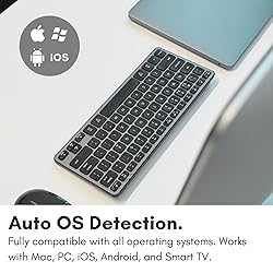 W𝗼𝗿𝗸 F𝗿𝗲𝗲𝗹𝘆 A𝗻𝘆𝘄𝗵𝗲𝗿𝗲 𝘄𝗶𝘁𝗵 S𝘁a𝗯𝗹𝗲 W𝗶𝗿𝗲𝗹𝗲𝘀𝘀 B𝗹𝘂𝗲𝘁𝗼𝗼𝘁𝗵 C𝗼𝗻𝗻𝗲𝗰𝘁𝗶𝗼𝗻: Experience effortless multitasking with our wireless Bluetooth keyboard that pairs and switches between up to 3 Bluetooth-enabled devices — laptop, smartphone, tablet, or smart TV — within a 30 ft range. Perfect as a MacBook keyboard or Apple Bluetooth keyboard, offering smooth, reliable performance across all your devices. D𝗲𝘀𝗶𝗴𝗻𝗲𝗱 𝗳𝗼𝗿 P𝗿𝗼𝗱𝘂𝗰𝘁𝗶𝘃𝗶𝘁𝘆, S𝗽a𝗰𝗲-Sa𝘃𝗶𝗻𝗴, E𝗿𝗴𝗼𝗻𝗼𝗺𝗶𝗰 C𝗼𝗺𝗳𝗼𝗿𝘁: This Bluetooth keyboard Mac compatible layout includes 78 keys and 13 shortcut keys to maximize efficiency while minimizing desk clutter. The built-in kickstand supports comfortable typing posture for long hours of work or study. Ideal as your iMac keyboard, Bluetooth iPad keyboard, laptop, or PC companion. S𝗲a𝗺𝗹𝗲𝘀𝘀 A𝗰𝗿𝗼𝘀𝘀 A𝗹𝗹 D𝗲𝘃𝗶𝗰𝗲𝘀 𝘄𝗶𝘁𝗵 U𝗻𝗶𝘃𝗲𝗿𝘀a𝗹 C𝗼𝗺𝗽a𝘁𝗶𝗯𝗶𝗹𝗶𝘁𝘆: With auto OS detection, this Bluetooth wireless keyboard instantly connects to Mac, PC, iOS, iPadOS, Android, and SmartTV. One elegant keyboard solution that keeps you connected across all platforms with zero setup hassle. P𝗼𝘄𝗲𝗿 T𝗵a𝘁 La𝘀𝘁𝘀 𝗳𝗼𝗿 M𝗼𝗻𝘁𝗵𝘀 - R𝗲𝗰𝗵a𝗿𝗴𝗲 L𝗲𝘀𝘀, T𝘆𝗽𝗲 M𝗼𝗿𝗲: Enjoy uninterrupted productivity with an 800 mAh rechargeable battery that provides up to 2 months of use per charge. This rechargeable keyboard Bluetooth includes a USB-C cable for fast, easy recharging whenever you need it. W𝗵a𝘁 Y𝗼𝘂’𝗹𝗹 R𝗲𝗰𝗲𝗶𝘃𝗲: Along with your mac wireless keyboard, you’ll enjoy dedicated customer support and peace of mind with our up to 2-year warranty because your satisfaction is always our top priority.