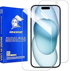 - The ArmorSuit MilitaryShield is a premium screen protector designed specifically for the Apple iPhone 16/ iPhone 15, made in the USA with advanced film material and cutting-edge technology. This ultra-clear shield provides unparalleled protection and clarity, featuring self-healing nano-technology that continuously eliminates scratches and maintains a flawless surface, while also boasting advanced UV-blocking properties to reduce blue light emission and reduce eye strain. Additionally, it's equipped with advanced capacitive touch sensitivity, allowing for seamless touch interaction and gesture recognition, and is fully compatible with on-screen fingerprint unlock and Face ID features. Furthermore, it's designed to work seamlessly with your phone's stylus, ensuring precise and accurate navigation and control. Precision-cut to fit your phone perfectly, it provides comprehensive coverage and superior protection against daily scratches, drops, and screen damage. Order now to experience the best screen protection for your iPhone, featuring unparalleled performance, durability, and peace of mind.