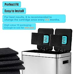 Trash Can Odor absorber filter Refills, Activated Charcoal Deodorizer Compatible with Home Zone Living 13 gallons 15.8 gallons and 18.5 gallons Kitchen Trash Cans with CleanAura odor control Compartment 5x4 inches, Fully compatible with the Built-in Filter Compartment located under the lid of Home Zone Living CleanAura garbage cans Absorbs and neutralizes smelly trash odors- Keeps your kitchen smelling fresh and clean Made by Natural Coconut Shell Activated Carbon- environment-friendly and highly efficient Each product is individually sealed and will not be exposed to air to weaken the adsorption capacity 12 Pack – Each filter provides up to 2 months of odor-absorbing power. Only the filters. The trash can is sold separately