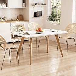 【MID CENTURY MODERN STYLE】: Mid-Century Modern rectangular dining table, white MDF tabletop with solid wooden legs, with minimalist features. The chic rectangular table matches almost any decor style. 【STURDY AND STABLE】:High-quality four solid wooden legs splay out to provide enough support for the table top. The adjustable legs can keep the table balanced and also protect your floor from the amount of friction, stable and sturdy. 【MULTI-FUNCTIONAL USE】: Rectangular table size: 47.2''W x 27.6''L x 29.9''H,and with a weight capacity of 250 lbs, Can be used as a dining table, coffee table and more. Widely used in your dining room, living room. It can accommodate 4-6 people and is a good choice for small apartments. 【EASY ASSECEMBLY AND CLEAN】:Equipped with a full set of tools and accessories and instructions, it is very easy to assemble. The wood grain table top is stain resistant and can resist hot water, just wipe with a damp cloth for a quick clean. 【★★★★★CUSTOMER SERVICE】:If you have any questions about our items, please feel free to contact us, we will provide you with the best solution within 24H. If you need a signature service to ensure the safety of your package, please contact us before placing an order. Below is the latest detailed installation manual, welcome to download for reference.