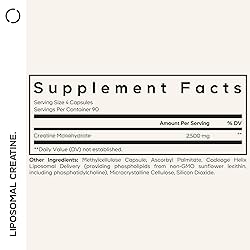 Potent Creatine Formula: Codeage Liposomal Creatine Capsules supplement provides 2,500 mg of micronized creatine monohydrate per serving, offering a strong addition to your workout routine. Liposomal Delivery: This creatine monohydrate supplement features a liposomal delivery with a phospholipid complex derived from non-GMO sunflower. 3-Month Supply: Each bottle of this pure creatine pills supplement contains 90 servings, providing a full 3 months of supply. Designed for All Lifestyles: This micronized creatine supplement is suitable for both men and women. It is vegan, non-GMO, soy-free, gluten-free, and dairy-free. Manufactured in the USA: Codeage Liposomal Creatine supplement is manufactured in the USA with global ingredients in a cGMP-certified facility for quality and purity.