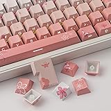 Tsungup PBT Keycaps Cherry Blossom Keycap Set - Custom Side Printed Pink Keycaps,135 Keys Gradient DoubleShot Sakura Key caps Cherry Profile Keyboard Key caps for Mechanical Keyboards