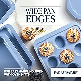 DOUBLE THE NONSTICK: The Farberware Easy Solutions cookie pan features an enhanced, two-layer nonstick for excellent release and long lasting nonstick durability. HEAVY-DUTY BAKEWARE: Farberware Easy Solutions bake pans are made with durable, heavy-duty steel construction to resist warping and facilitate faster, more even baking. A STEADY HOLD: Our extra-wide handles provide a comfortable, confident grip (even with oven mitts on!). SLICE IT UP: Our Easy Slice Guide markings on the pan's rim make it a cinch to cut perfectly even portion sizes every time. DOUGH DROP ZONES: Get uniform cookies that don't melt into each other with our Easy Placement cookie outlines.