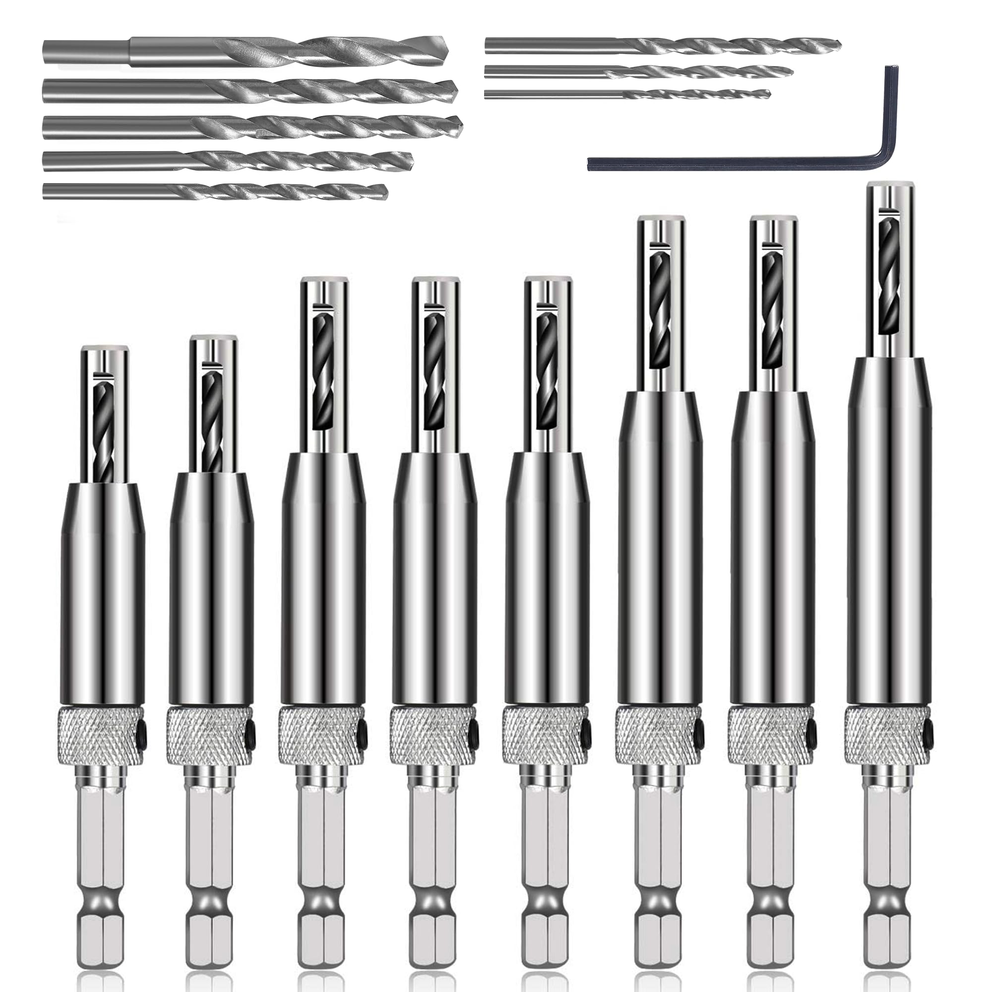 - Specification: Product name:AIMLENTOOL 3pcs Step Drill Bit Set Brand:AIMLENTOOL Number: 3pcs Size Contents: 31 Step Sizes: 13 step drill (1/8, 5/32, 3/16, 7/32, 1/4, 9/32, 5/16, 11/32, 3/8, 13/32, 7/16, 15/32, 1/2-inch) 6 step drill (3/16, 1/4, 5/16, 3/8, 7/16, 1/2-inch) and 12 step drill (3/16, 1/4, 5/16, 3/8, 7/16, 1/2, 9/16, 5/8, 11/16, 3/4, 13/16, 7/8-inch) Features: Our high-speed steel drill bits, fortified with a titanium coating that makes the drill bit harder than a typical HSS bit, can reduce the friction drill, and perform well in heat, corrosion, and rust resistance. After-Service Guarantee: If you have any questions, please feel free to contact us, and our customer service staff will reply you within 24 hours.