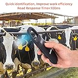 🐻Support multiple protocols - The handheld reader supports for ISO 11784/11785, FDX-B and ID64 RFID, easy to operate, one button to read. NOTE: 1.Please confirm the frequency efficiency and agreement of your electronic tag before purchasing,Does not support FDX-A protocol. 2.The reader CAN NOT read AVID microchip. 🐻Wider Data Read Range - 0-20cm reading range, extremely fast scanning. Save up to 256 tag information and you can upload these information to computer via USB cable. 🐻OLED Display - The handheld reader has high brightness display makes it convenient for you to read. OLED display screen, readable in the sunlight. 🐻Built-in lithium battery rechargeable - No need to replace the battery, easy to operate, can be charged through the USB interface. If no tags be scanned, the device will shutdown automatically after 180 seconds or you can long press the button for 3 seconds to shutdown the device. 🐻Portable and lightweight - Product size only 6.61 x 3.46 x 0.59 inch, 90g. You could hold them just one hand. portable and convenient to use. Widely used for little animal management, farm management, railway inspection etc.
