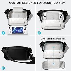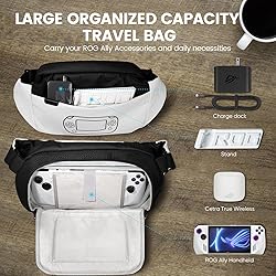 CUSTOM CARRYING TRAVEL CASE for ASUS ROG ALLY- Precise designed keeps your handheld and accessories organized while protecting them from damage and make storing as well as transportation a breeze. SUFFICITNE STORAGE SPACE- The ROG Ally Handheld case has a large mesh pocket inside and a AC adapter storage compartment. It can hold all official accessories as well as your headphones, power banks, portable stand, ROG gaming charger dock, USB cables etc. BUILD IN STAND- The inner cards slots board can be use as switch stand, you can enjoy the switch tabletop mode anywhere. Make going on vacation very happy, perfect fit for outdoor activities and enjoy your game with family or friends. PORTABILITY & COMFORT -- The lightweight design of the travel case and nylon handle make it convenient for carrying by hand or hanging in any location, whether at home or on the go, for comfortable portability. What you get: A Large ROG Ally hard carrying bag and a screen protector; Worry-free 12-month warranty, and friendly customer service. (ASUS ROG Ally and other accessories not included, for demonstration purposes only).