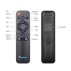 - Hardware specifications◈ Model Number: BPR1S Plus◈ Transmission method: BT+IR+2.4G◈ Distance >10m◈ Net weight : 0.11 lb◈ Product Material : Plastic◈ Color: Black◈ Product Size: 6.47 x 1.6 x 0.78 inches◈ Product Category : BT Air Mouse Remote◈ Battery Type: AAA*2 (Not included)◈ Voice remote control: YES◈ Gyroscope: YES◈ IR full keys learning: YES◈ 2.4G Wireless: YES【Simple to use】The ergonomics of the air mouse remote control will replace the fixed computer mouse and infrared button remote control, allowing you to conveniently manage your computer and TV from the most comfortable position.【 Muti-connection methods】The BPR1S Plus BT voice remote control support BT + IR +2.4G connection, you can use this magic remote control to control most android device to enjoy your home entertainment.【Supports firmware upgrades】This air mouse remote for android tv box supports OTA, through the firmware upgrade, can solve the bugs and some compatibility problems.【Product Application Occasion】Andrid TV box, Android TV Stick, Smart projector, Some smart TVs, mobile phone, tablet computer,desktop computer, all-in-one, multi-scene application.【Incompatible devices】Fire Stick, DVB Box, ROKU Box, MAG Box, Apple Box and some LG S-amsung TVs.BT Pairing1. To pair another new device, press “OK” and “Back” at the same time till the light flashing.2. Keep the remote control within 1 meter of the device for faster pairing.3. Open BT searching, and pair with “BOXPUT | BPR1S Plus”.2.4G Pairing1. Keep pressing the “OK” and “Back” at the same time till the light flashes.2. Plug in the USB receiver and keep the remote near the USB receiver within 50 cm for faster pairing.3. The indicator light stops flashing to indicate successful pairing.IR Learning (All buttons)1. Press the button that needs to learn for 8 seconds till it’s flashing, then release (The indicator light on after flashing).2. Align the IR, press the button that would be learned, it shows success when the indicator light flashing.3. Repeat 1~2 to learn the other buttons.4. Press “Delete” and “Back” at the same time till the light flashes to reset IR.