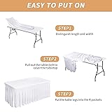 - Unique 2-in-1 design that perfectly combines the tablecloth and table skirt. No overstretching. It can overs all items you prefer hidden under the table Which will bring a neat and elegant look during your events.