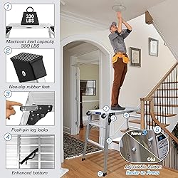 ⚙️Durable Construction: Built with heavy-duty aircraft-grade aluminum, Orientools work platform is engineered for durability and strength, supporting up to 330 lbs. Its non-marring rubber feet ensure stability on various surfaces like concrete, wood, asphalt, or bare ground. ⚙️Portable, Versatile, and Mobile: This foldable scaffolding platform and wide step ladder are crafted from sturdy aluminum, offering both daily use and effortless portability. Weighing just 18.2 lbs, it features wheels and a side handle for easy transportation to any location for indoor and outdoor tasks. The adjustable height from 24 inches to 35 inches enhances its utility in various working conditions. Additionally, it can serve as a simple cart, facilitating the transport of other items ⚙️Enhanced Safety Features: Equipped with a large non-slip surface (39.4"×18.5") and sturdy safety locks, the work bench ensures a secure, slip-free workspace. Anti-skid rubber pads and reinforced crosspieces provide additional stability. ⚙️Multi-Functional and Convenient: Suitable for a wide range of activities such as vehicle washing, home decorating, window cleaning, and more, this step stool serves multiple purposes, including being used as a makeshift table for picnics. ⚙️User-Friendly Design: No assembly required, with easy height adjustment and a portable structure that makes it simple to carry and use in various settings. The ladder platform’s nonskid design ensures safety even in wet conditions, making it a reliable choice for various tasks.