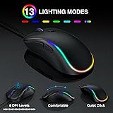 Wired Keyboard Mouse Combo - Large Print Backlit, Ergonomic Wrist Rest, 6 DPI RGB for PC/Windows - Ideal for Seniors, Students, Office and Home SABLUTE