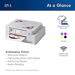 Compatible with Artspira: Import and save up to 20 printing images easily with the Artspira app. With access to printing patterns and designs, plus the ability to convert images into poster-style drawings, Artspira will have you creating on the go Create in Artspira: To start using the Brother Sublimation Printer, you must first download the Artspira app. Once in Artspira, you can access over 100 sublimation designs, stylistic photo authentic images, and more. Make readymade clothes all yours: Use the Brother Sublimation Printer for your next DIY Project. It's as easy as creating your design on Artspira, transferring it, printing, heat pressing, and finishing. Heat press required-additional purchase necessary Fast printing speeds: With fast printing speeds, you can quickly show off your custom project in vibrant color Brother Genuine Sublimation Ink: Crafted for vibrant, long lasting results, Brother Sublimation Ink prints in muted tones on paper and is activated by heat to transfer into bright, rich colors on your project. Press Once, Wash Often! : The Brother SP1 is designed to create projects with longevity. Unlike traditional iron on or iron pressed vinyl transfers, sublimation used the heat and pressure of a heat press that melts the ink into polyester coated items (mugs, shirts, bags, hats and more!) and stays vibrant throughout multiple wash and wear cycles. Brother Reliability: Brother’s reputation for creating first-rate, high-quality products continues with the Brother Sublimation Printer This product is intended for sale only in the US at 120 volts, and any other use or sale may void the warranty.