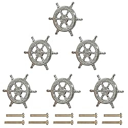 LLDYNW 6 pcs Ship Rudder Handles Ship Helm Cabinet Knobs Ocean Theme Knobs Zinc Alloy Handles Dresser Knobs Furniture Door Single Hole Pull Handles (Silvery)