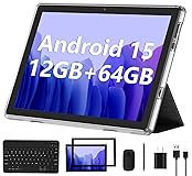 2-in-1 Android Tablet - Our versatile tablet effortlessly transforms from a tablet to a portable laptop with the included mouse and keyboard, you can use it easily for productivity while on the move or switch to tablet mode to enjoy entertainment. Android 15 Tablet with GMS Certification - The tablet is powered by the latest Android 15 operating system. It offers an easy-to-use interface and access to a wide range of apps, games and services through Google Play Store. You can keep up with the latest features and experience a seamless and simple user experience. 10.1 Inch HD Screen - Immerse yourself in breathtaking visuals on the expansive 10.1 inch high definition IPS display. Featuring a resolution of 1280*800, every image and video bursts with vibrant hues and pristine clarity. 12GB RAM & 64GB ROM - Allow you to multitask and store important data, pictures and videos,you can even add a 1TB Micro SD card for more storage. Dual Cameras and more - This android tablet features a 2MP front camera and an 8MP rear camera, supporting 2.4GHz WiFi / WiFi 6 and Bluetooth 5.0. It has a built-in 6000mAh lithium battery for reliable all-day performance.