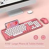 Wireless Keyboard and Mouse Combo, Retro Round Keycap Typewriter Keyboard with Phone/Tablet Holder, Cute Colorful Keyboard for Windows/Computer/Laptop by SABLUTE (Pink)