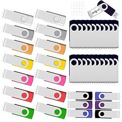 🌟 Economic Bundle:40 Pack in total - Multiple Color Set; (USB drives in the bundle might be dispatched separately) ⚡ SPECFCATIONS: Capacity - 4GB / Interface - USB2.0 / Compatibility - Compatible with USB 2.0 and below Supports Windows 7 / 8 / 10 / Vista / XP / 2000 / ME / NT Linux and Mac OS. ⚡ EXQUISITE & CONVENITN DESIGN: Bulk flash drive 4GB with swivel design which ensures the convenience and good looking while the aluminium cover provies the USB stick with protection from shocking. The 50-pack set makes it perfect for sharing files with friends, family, or colleagues. They also make thoughtful gifts for special occasions or events. ⚡ MULTIFUNCTION & WIDE COMPATIBILITY: Carry your digital world in your pocket with versatile and lightweight pen drive 4GB. JBOS memory sticks have a 360° swivel aluminum cover protecting the USB connector. An eyelet hole at the end allows for easy attachment to your key chain or lanyard. Take your data anywhere with safety and ease. Compatible with USB devices like computers, TVs, speakers, notebooks, and car audio systems. Store and transfer file like videos, EXCEL, Images, WORD, PDF, PPT. ⚡ Label Your USB - The flash drive set includes label sheets, making it easy to identify and organize your files on each flash drive. Labelling the zig dirves ensures that you can quickly locate the files you need without wasting time. The labels can be customized with relevant information such as the date, project name, or file type, giving you a quick and easy reference point.