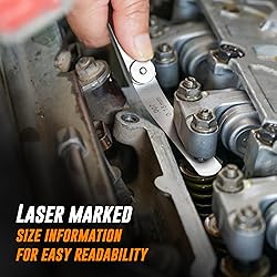 PRECISION MEASUREMENT: Premium metric feeler gauge set with both straight and angled designs; Includes 32 blades in both inch (.001-.040) and metric measurements; Perfect gap gauge for automotive valve adjustments CLEAR AND ACCURATE MEASUREMENTS: Each feeler gauge mm is clearly marked, and with the feeler gauge metric sizes laser-etched, you'll experience ease of readability and precision in your measurements. AUTOMOTIVE ESSENTIALS: Spark plug feeler gauge designed for precise gap settings; Includes valve clearance feeler gauge for engine maintenance; Valve lash feeler gauge ensures optimal engine performance and longevity VERSATILE APPLICATIONS: Calibrador de bujias automotriz for professional mechanics; Mm gauge markings clearly stamped on each blade; Gap measuring tool perfect for automotive, motorcycle, and precision instrument adjustments PROFESSIONAL DESIGN: Long feeler gauge set reaches deep recesses in engines; Angled feeler gauge set provides access to difficult areas; Features comfortable handle and organized storage case; Stainless steel holder construction resists corrosion.