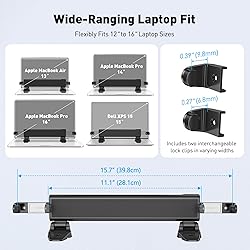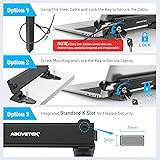Universal Fit for Diverse Laptops: Our AboveTEK Locking Station is designed to fit a wide range of laptops from 12" to 16", including MacBook, MacBook Air, Surface Pro and Chromebooks. Its adjustable arms accommodate widths from 11.1" to 15.7", ensuring compatibility with various models Enhanced Security with Keyed Lock and Long Cable: The AboveTEK MacBook locking comes with a keyed laptop lock and a lengthy 78.7-inch (2m) cable, ideal for securely tethering to any fixed structure. It also includes mounting options for desk attachment, ensuring your laptop stays safe and secure. Flexible Viewing and Usage: Equipped with a pivot hinge, our laptop locks and security cables allows for 45° to 125° viewing angles, offering unmatched flexibility in laptop positioning. This feature is ideal for users who value both security and ergonomic comfort. Robust and Heat-Dissipating Construction: Built with durable zinc alloy and ABS, our laptop security lock station is designed for longevity. The non-slip surface ensures stability, while its heat-dissipating properties keep your laptop cool during prolonged use. Lightweight, Versatile Security:Net weight At only 0.94lb (427g), the AboveTEK Computer Lock offers both portability and robust security. Equipped with dual lock clips (6.8mm & 9.8mm) for various laptop thicknesses, it ensures a secure fit. Ideal for protecting devices in public areas like coffee shops and libraries, it's the perfect blend of convenience and safety.