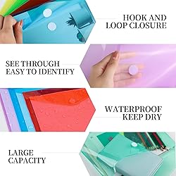 A4 Plastic Envelopes: Set of 8pcs, 12.8” x 9.2”, fit for A4 size/standard US letter size paper. Come in 6 assorted colors - 2pcs Blue, 2pcs Red, 1 Yellow, 1 Purple, 1 Green, and 1 Transparent, eye-catching & good for sorting out messy paper. Premium Plastic Folders: Made of high quality plastic, thick, sealed nicely on edges, sturdy, not easy to come apart or fray, reusable and long-lastin. Transparent, see through easily, help sort out different type of paper, organize your desk, and reduce mess. Keep Paper in Mint Condition: Waterproof, highly wear-resistant, well against water, dust, wrinkle, scratch, friction, damage, and loss, great for storing and transporting important documents, and protect fragile items like old newspaper and files. Plastic Envelopes with Paste Closure: Each plastic envelope has a paste closure, secure, won’t open itself while make it pretty easy to open and close the envelope, so you can get what you need quickly, effectively save your time! Multipurpose Plastic File Folders: A4 plastic file envelopes, great for papers, stationery, brief report,bills, receipts, appliance instructions, photos, for craft items, craft papers, stickers, embellishments, for storing travelling items, makeup items and so on. Suitable for school, office, home, travel etc..