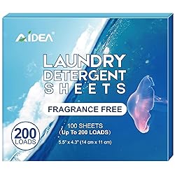 AIDEA Laundry Detergent Sheets, Unscented-(200 Loads) 100 Sheets, Laundry Detergent, No Plastic Jug, Lightweight & Easy To Use For Travel, Apartments, Dorms