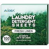 AIDEA Laundry Detergent Sheets, Washer Sheet Detergent, No Plastic Jug, Laundry Soap Sheet For Travel, Home Washing, Fresh Scent-(160 Loads) 80 Sheets