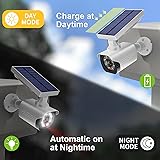 Design: WALI fake security cameras closely resemble real ones. With bright 800-lumen solar motion flood lights outdoor for motion-activated illumination and a solar-powered red warning light, these solar dummy cameras effectively deter intruders, offering affordable outdoor security Three PIR Modes: Equipped with an infrared sensor that detects motion from 3 to 5 meters away, these dummy cameras' motion lights for outside feature three illumination modes - customizable via simple button presses, ensuring reliability even at night Installation: IP66 rainproof design and high-strength ABS housing ensure these fake outdoor cameras withstand outdoor weather conditions. No wiring or electricity needed—simply mount it on walls or ceilings, making it ideal for porches, backyards, and more Efficient Usage: WALI outdoor dummy security cameras have a Built-in solar panel that charges during the day to power the red light and floodlights at night. The solar panel and base are freely adjustable to achieve the ideal use and charging angle Package Includes: 2 dummy solar cameras (white), 6 mounting screws, 2 security warning stickers, and a user manual. Backed by U.S.-based customer support available 7 days a week for installation or usage help