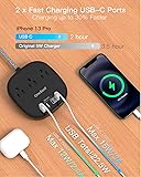 【Right Angle Ultra Flat Plug & 6 Ft Braided Extension Cord】 - With only 0.35 inch ultra thin plug and 45 degree right angle design, which is much slimmer than traditional plugs, can close to the wall easily and hide in the back of furniture, no waste for outlet and space. 3mm thicker extension cord is made of pure copper, which has better current carrying capacity (15A). The braided power cord is not easy to deform, durable and more safety. 【7-in-1 Desktop Power Strip with USB Ports】- Flat extension cord could turn 1 sockets into 3 outlets 2 USB-A and 2 USB-C, which could charge up to 7 devices at the same time. Compatible with your cellphone, laptop, tablet, earphone or cameras without a variety of converters, keep your desktop organized, a must have accessories for college dorm room, home, office, bedroom, kitchen and etc. 【USB C Fast Charging Station】- Added extra 2 USB C ports for Apple devices fans, the USB C port can charge up to 5V/3A. 2 USB-A ports can charge up to 5V/2.4A Max, all USB Ports Output is 5V/4.5A, 22.5W max which is 30% faster than other 15W power strip. 【Cruise Accessories Must Haves 】- The small cruise power strip with NO surge protection, it's absolutely a must have home and cruise ship accessories as cruise travel need power strips DO NOT have surge protection. Compact and lightweight, easy to carry and best for travel. 【Multiple Safety Protection】 - Our power strip are certified by ETL and FCC, high-quality components, 1382℉ fireproof, the power strip can prevent your electric devices from over-current/over-charge/short circuit/over-heated.