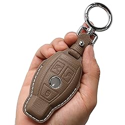 CISUI Leather Key fob Cover,Keychain Shell,Leather Key case Protector Compatible for 3 Buttons Mercedes Benz C E M S GLK CLA GLA GLC GLE CLS CLK G AMG Series Smart Remote Key (Khaki)