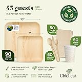 Chic Leaf Compostable Palm Leaf Plates & Cups Set - 10 In & 7 In Pack of 45, Natural - Biodegradable Tableware & Disposable Plates & Cups - Durable Bamboo Utensils, Rustic Charm Table Setting