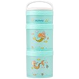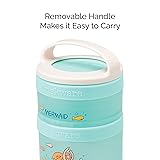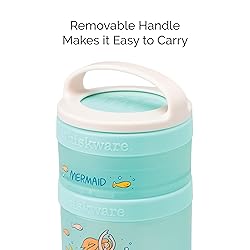 Stackable, interlocking containers for snacking on the go, featuring Mermaids Includes three containers, measuring 1/3 cup, 1 cup, and 1 cup Twist 'n' Lock system connects containers for easy portability Removable handle makes stack easy to carry or clip to a bag BPA and phthalate-free; dishwasher and freezer safe; manufacturer’s limited lifetime warranty